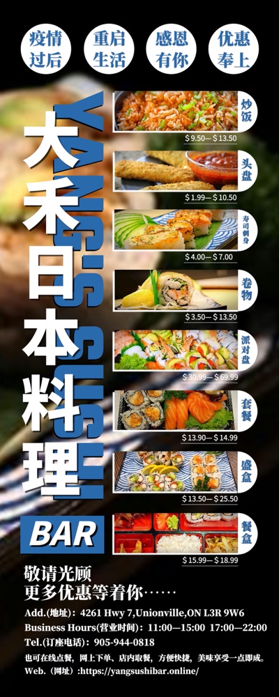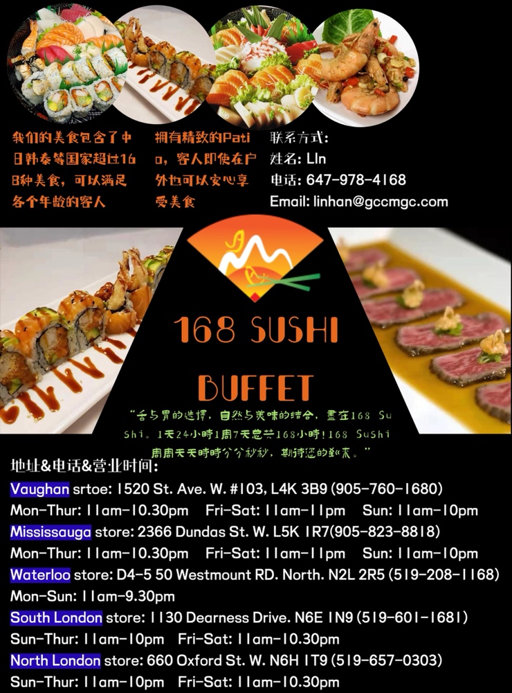 营业时间:1. Vaughan store:Mon-Thur 11am-10:30pm;Fri-Sat:11am-11pm;Sun11am-10pm