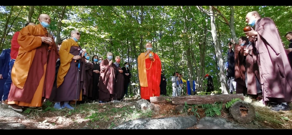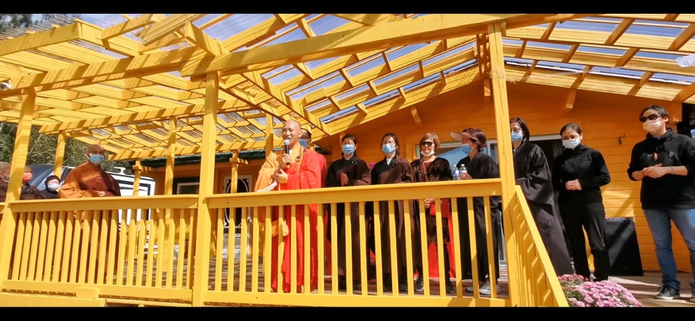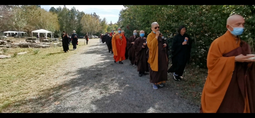 這天一大早風和日麗,碧空中祥雲繚繞,真是九月天里的好天氣。早在一周前「中華寺」即有「靈山寶華寺」即將舉行灑淨通告,法友信眾們陸續踴躍報名,儘管距離多倫多有兩百多公里,開車時間需2個多小時,但大家依然懷著喜悅的心情,駕車前來參與盛會。在疫情期間控制人數和保持社交距離的情況下,參加人數也有七八十人之多。