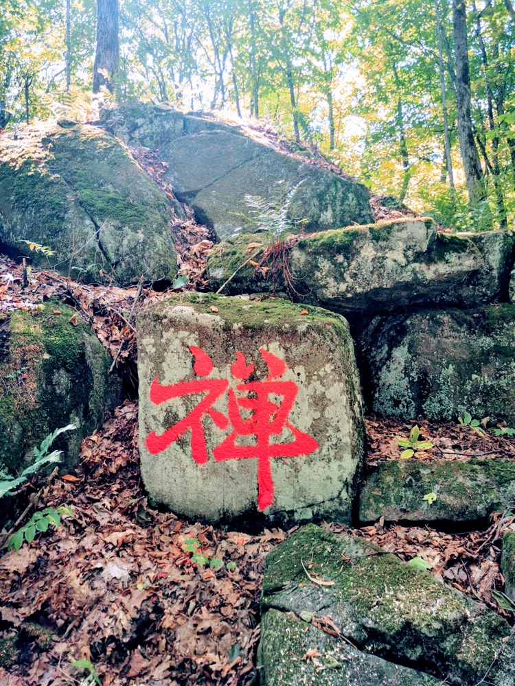 接著住持照續大和尚又沿著山路帶領大家灑淨至吉祥文殊寶地,望海觀音寶地,楓葉台,涅槃山,金剛山等,山景石如同一靈龜臥藏在那裡聽經聞法,住持和尚帶領大眾稱念地藏菩薩聖號共同發起殊勝願心如同地藏菩薩廣度一切眾生。