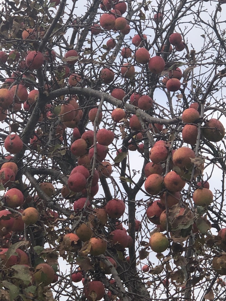 今年秋末一个不经意的瞬间,我被苹果树彻底的惊艳了:树身几乎不见枝丫全都挂满了红彤彤的大苹果!