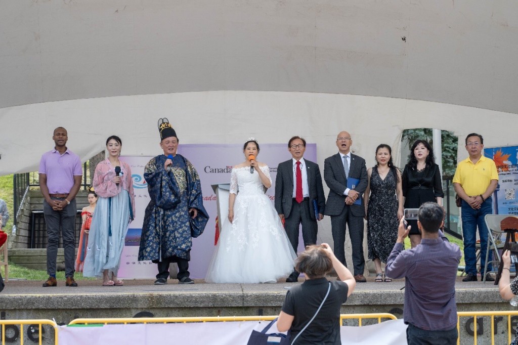 这次以传承多元文化传统元素为主题的夏至节嘉年华,汇集了加拿大多族裔的参与者,活动在40多号京剧演员的开场鼓中展开序幕,40多名身着不同舞台角色的京剧演员挥旗,在Angle Liang的国歌声中,主持人用中,英,法,韩语开启乐节日的序幕。