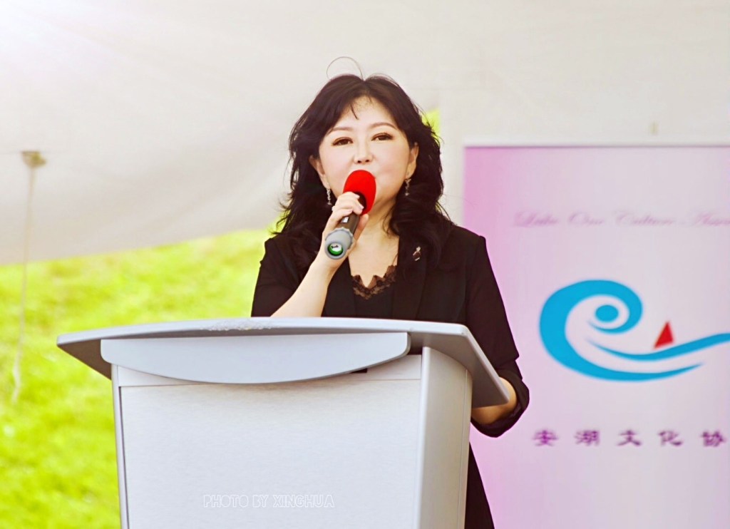 赞助方代表Unigift Papercraft Inc.的Melinda女士致辞:很荣幸参加安湖文化协会的夏至节活动。希望通过我们力所能及的支持,为社区居民带来更丰富多彩的生活,同时为加拿大多元文化的发展贡献一份力量。Unigift Papercraft Inc.专注于手工纸艺的专业公司,该公司生产的各种纸艺礼品非常受欢迎,本次夏至节的日晷模型就是该公司提供。