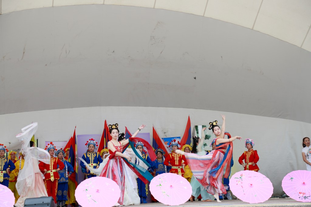 大量的多族裔节目参与,参与者身着盛装,展示富有特色的民族风