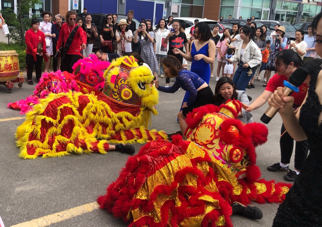 现场气氛热烈,人头涌涌。欢快的乐鼓和吉祥的中国狮舞吸引了无数路人,欢声笑语和一片手机晃动,路人和众多的来宾们纷纷用照片留下这开心时刻。