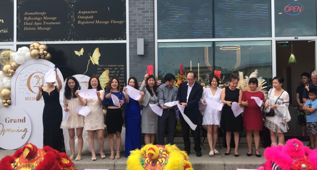 2024/07/06 位于安大略省士嘉堡米德兰大道 3720 号 4-6 单元的 21G MEDl SPA (以下简称 21 G)在传统的舞狮剪彩仪式中隆重开业。