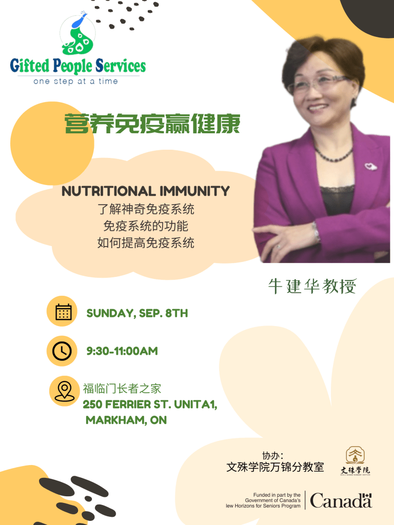 9月8日上午9:30,由天才服务中心主办、加拿大联邦政府赞助的“营养免疫赢健康”专题讲座在文殊学院万锦分教室顺利举行,为“福临门长者之家”的40多位长者和健康爱好者带来了一场深具启发的健康之旅。