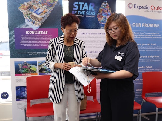 作为一家致力于为客户提供卓越旅游体验的公司,Expedia Cruise公司遍布全球,长期以来,他们致力于为顾客提供周详的旅行服务和个性化的旅游方案。公司通过海陆空,让客人们尽亨全球渡假胜地;从五星级酒店的极致舒适到专属定制的私人行程,从奢华到平凡,Expedia Cruise为客人们打造了无可替代的独特五星体验。在当天的庆典上,Leo和Kate 介绍和展示了他们的服务项目,旅游产品和现有特别优惠项目,并现场为嘉宾们提供专业的旅行咨询。