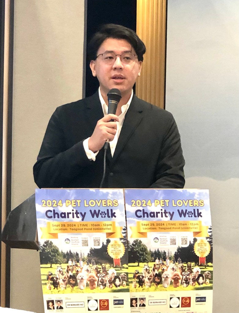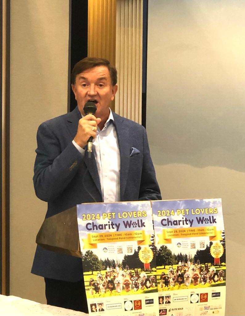 在9月18日在万锦市的新世纪皇宫餐厅举办了一场记者会,为即将举行的「2024 爱宠慈善结伴行」- 2024 PET LOVERS CHARITY WALK 活动拉开序幕,该活动旨在支持万锦市多福医院基金会(Markham Stouffville Hospital-MSH Foundation)。此次活动由Ginny Chung主办,万锦市区域议员何胡景(Regional Councillor Alan Ho)联合主办。