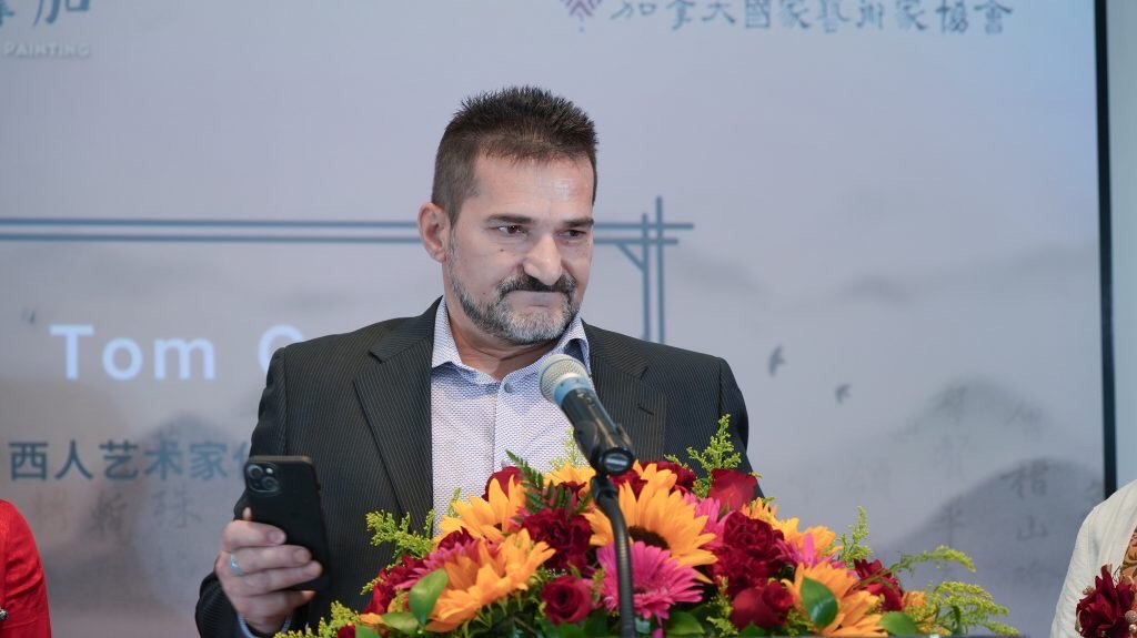 此外,前加中地产投资总商会会长孙志峰,加拿大国家艺术家协会副会长、书画大展组委会副主席Tom杨,书画大展组委会副主席王舒合,协办方代表:大西洋文化艺术交流协会会长、书画大展组委会副主席于琮章,支持方代表:大多伦多中华文化中心主席林树田,加拿大国家艺术家协会常务副会长、书画大展组委会副主席兼秘书长芮家庆,加拿大国家艺术家协会美术研究院院长、书画大展组委会副秘书长蔡晓丹,加拿大国家艺术家协会顾问、书画大展组委会副主席李荣宗,民革中央画院副院长都本基,协办方代表、书画大展组委会副主席中国国家级唐卡传承人、中国工艺大师、青海桑雄瑞相丹青唐卡画院院长桑吉才让,马来西亚美术家协会会长朱绍瑛,石鼓印社社长吉朝声,西人艺术家代表Tom Grella ,加拿大著名华裔艺术家何靖恒等嘉宾也出席了开幕式。