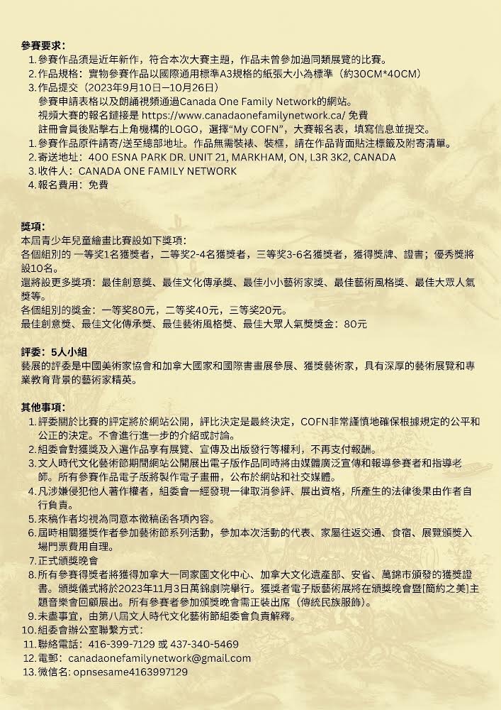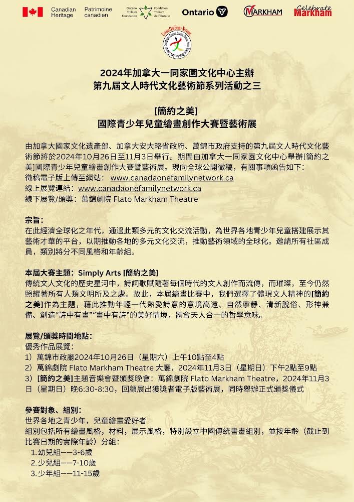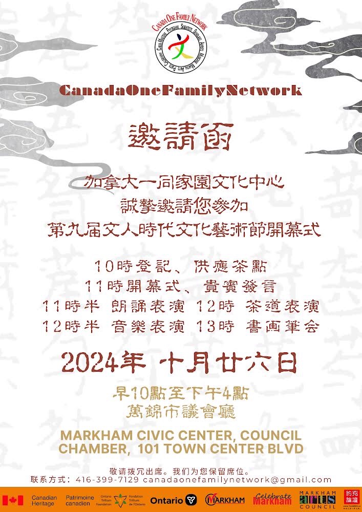第九届文人时代文化艺术节将于10月26日在万锦市政厅隆重开幕!