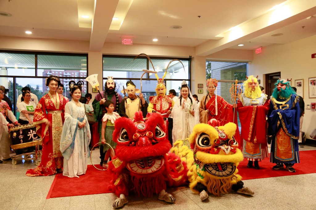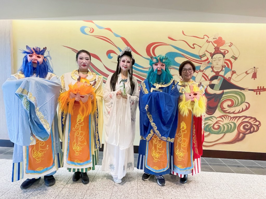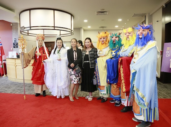 当开幕礼告一段落,我找到正在二楼休息室卸装的「西游记」剧组,趁这个空档我简单的採访了「安湖文化协会」会长Alice,也是「西游记」剧主负责人: Alice说「安湖文化中心」成立的目的就是传播中国传统文化,促进中西文化交流。