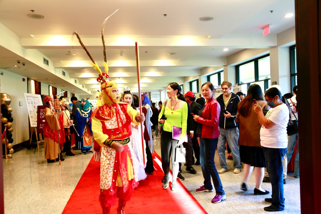这次他们剧组的表演造型是「西游记」:唐僧,孙悟空,沙僧,八戒,王母娘娘,铁扇公主,那咤在全场各显神通,忙碌的配合嘉宾们合影留念。