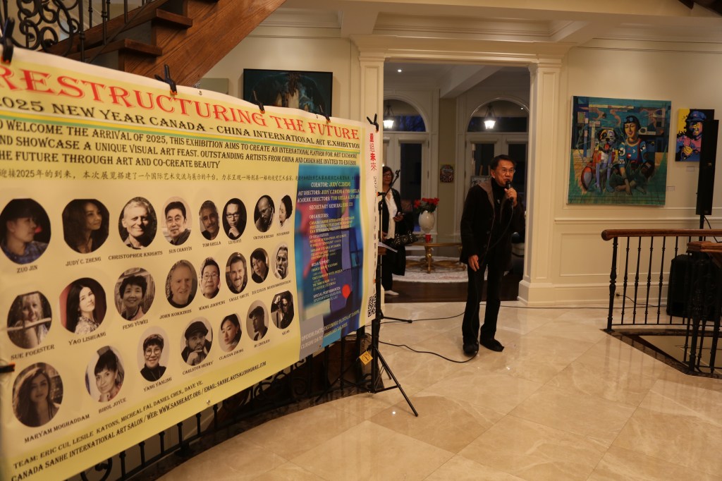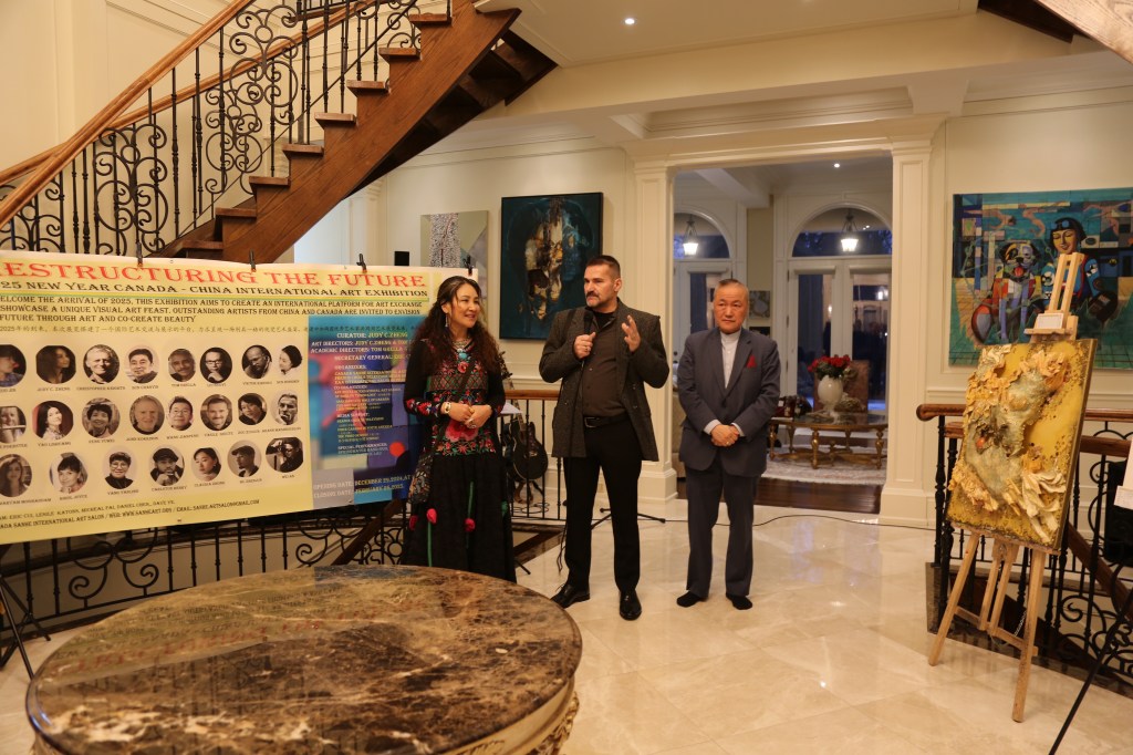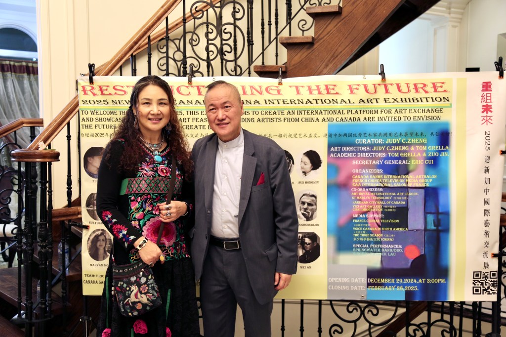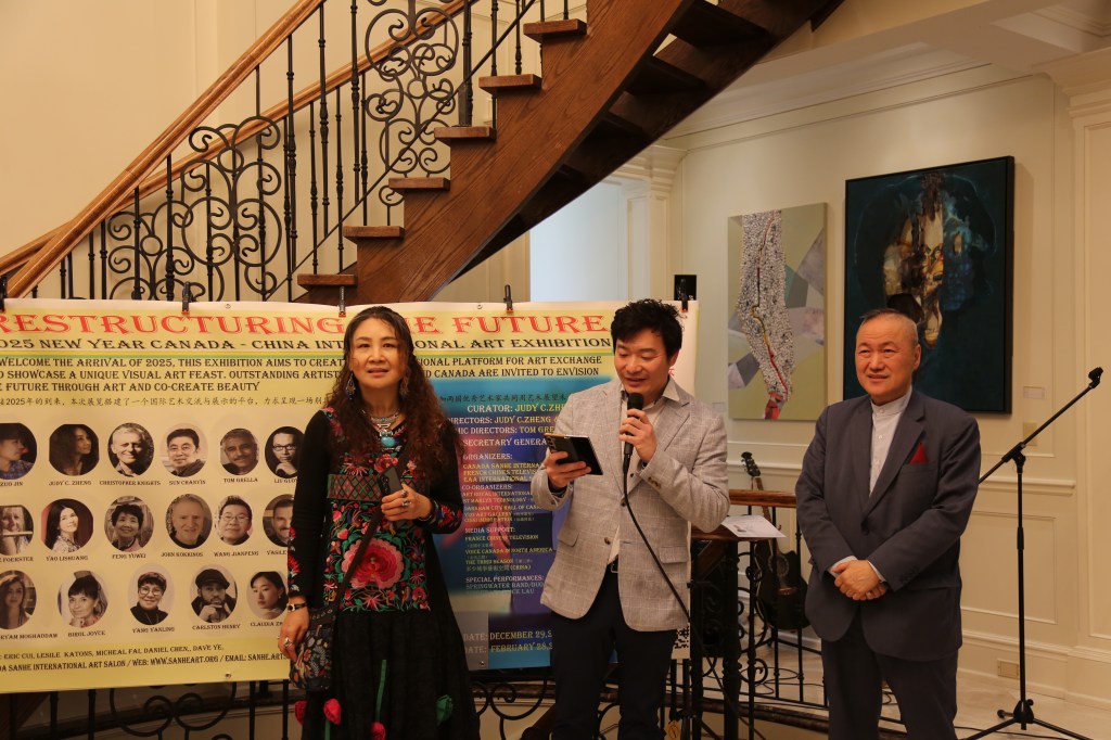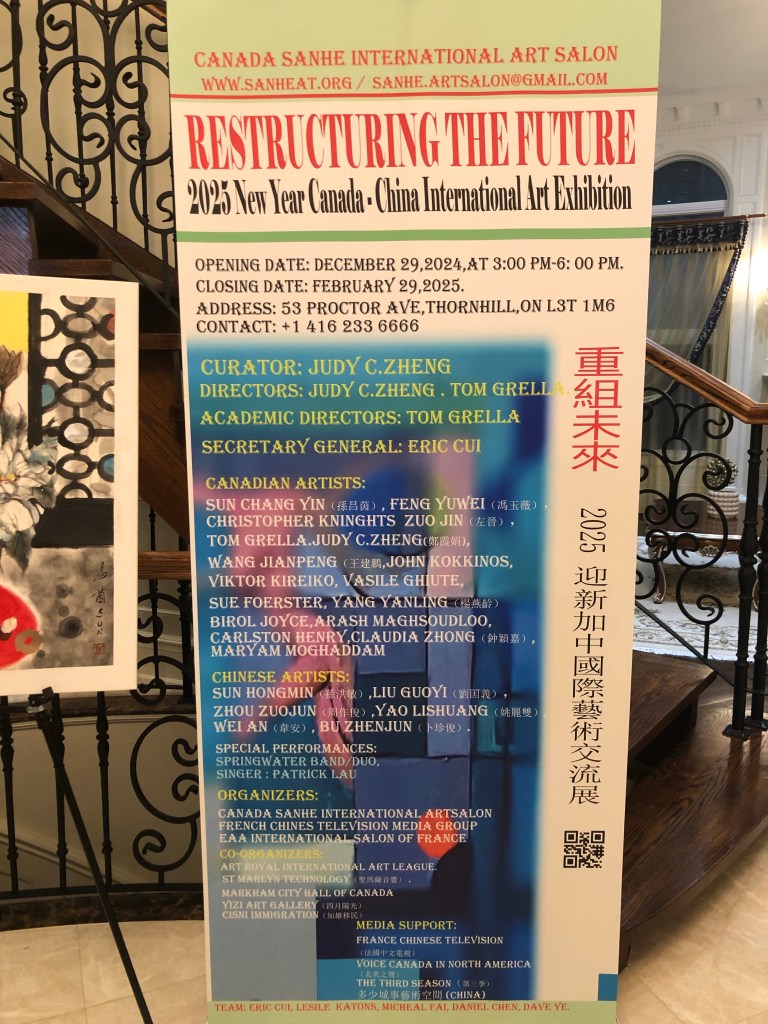 由加拿大三和国际艺术沙龙、法国中文电视及欧美亚国际艺术沙龙联合主办的“重组未来”2025迎新加中国际艺术交流展,于2024年12月29日在多伦多盛大开幕。本次展览以“重组未来”为主题,汇集中加两国艺术家,通过油画、版画、漆画、雕塑、陶艺等多种艺术形式展出120多件作品,充分展现对未来世界的深刻思考和艺术表达。