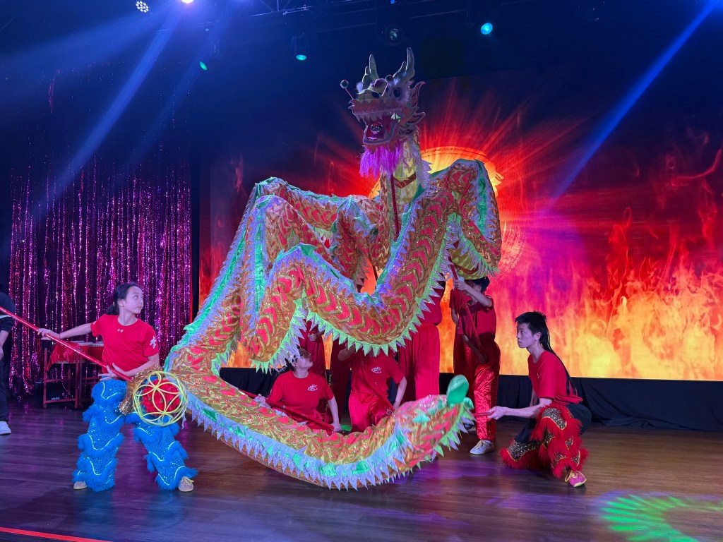 晚会的亮点还包括Over Christina的独舞表演和史松坤老师带来的传统京剧《淮河营》选段,为整场晚会增添了浓厚的文化氛围。同时,魔术师Ray Wang的魔术表演《浪漫出牌》以及博乐AXIS击剑俱乐部的花剑与配剑表演也让来宾们惊叹不已。