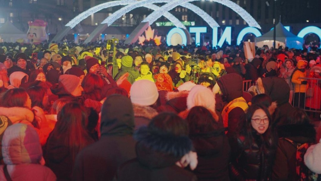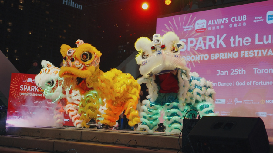 - 晚10点整的烟花秀:在多伦多市长Olivia Chow和活动发起人Blur Wu以及一众嘉宾的带领下,广场上数万名观众齐声倒数,共同迎接这一激动人心的时刻。伴随着传统中国音乐《金蛇狂舞》,璀璨的烟花点亮多伦多的夜空,随后精彩的闪灯舞狮,财神派发红包,人群蜂拥气氛高涨,在欢快的春节歌曲中,各族裔更是一起跳舞,欢庆春节!