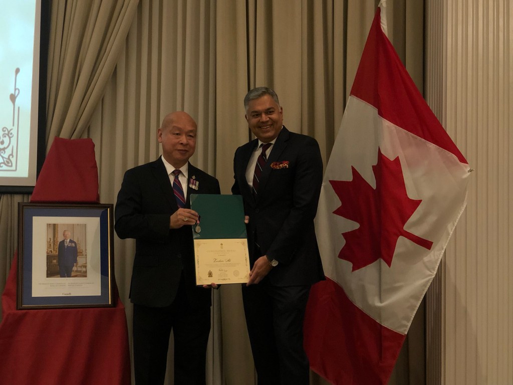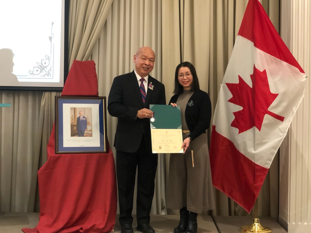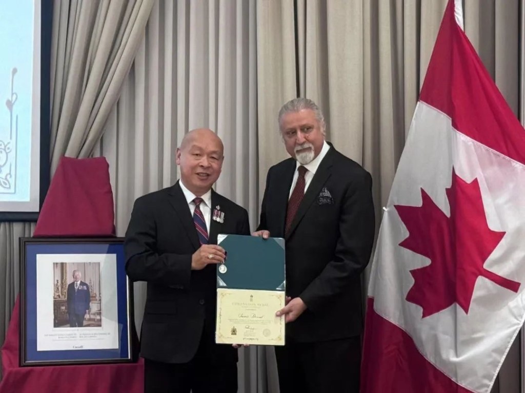 2月28日,联邦国会议员蒋振宇(Paul Chiang)在万锦Crystal Fountain宴会厅举行隆重颁奖仪式,为多位杰出人士颁发查尔斯三世国王加冕勋章。