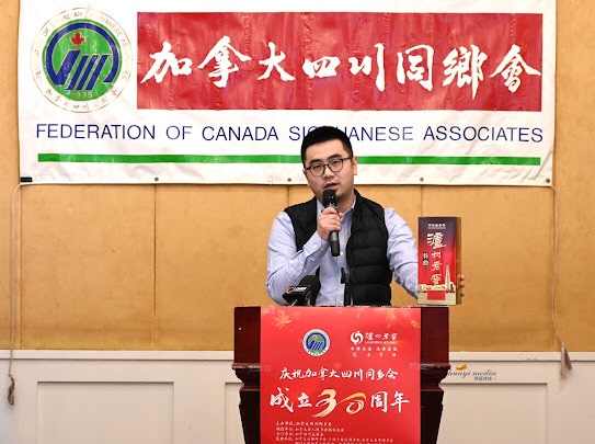 本次活动的冠名赞助商泸州老窖,作为中国历史悠久的白酒品牌,泸州老窖特别推出“泸州老窖·四川同乡会30周年纪念版特曲酒”,欢迎嘉宾收藏与品鉴,泸州老窖商业发展(北美)有限公司多伦多销售主管聂振邦也发言预祝活动成功。