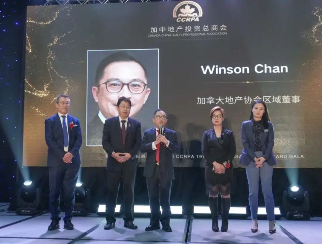 同时,加拿大地产协会区域董事、Tridel副总裁Winson Chan,安省地产协会前主席Tania Artenosi,多伦多地产局主席Elechia Barry Sproule,加拿大地产学院(REIC)CEO Don Inouye,国际注册商业房地产投资师协会加拿大中部分会(CCIM)候任会长Mr.Shuk Bhaura,加拿大道明银行(TD Canada Trust)副总裁Racheal Wong、协平世博集团(Concord)副总裁Dennis Au-Yeung、加拿大皇家银行RBC私人银行副总裁David Kuo、满地可银行BMO副总裁Rayna Du以及CCRPA顾问委员会、CCRPA地产公司总裁委员会、CCRPA开发建筑总裁委员会、地产局、地产学院代表及全体赞助商一同上台合影,共同见证这一行业盛事。
