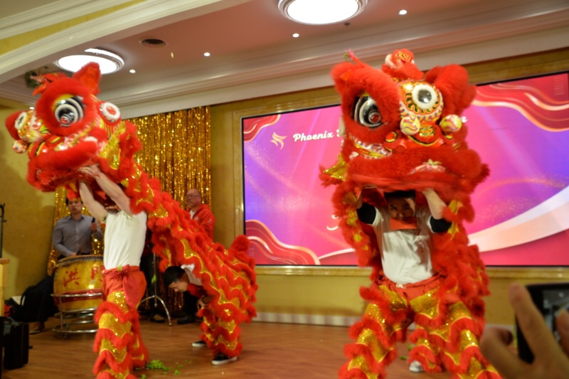晚宴精彩纷呈,其中的醒狮表演尤为引人注目。气势磅礴、充满活力的舞狮寓意着吉祥和繁荣,赢得了现场嘉宾的热烈掌声。这场传统表演不仅展现了中华文化的深厚底蕴,也象征着鲲鹏金融的美好愿景。
