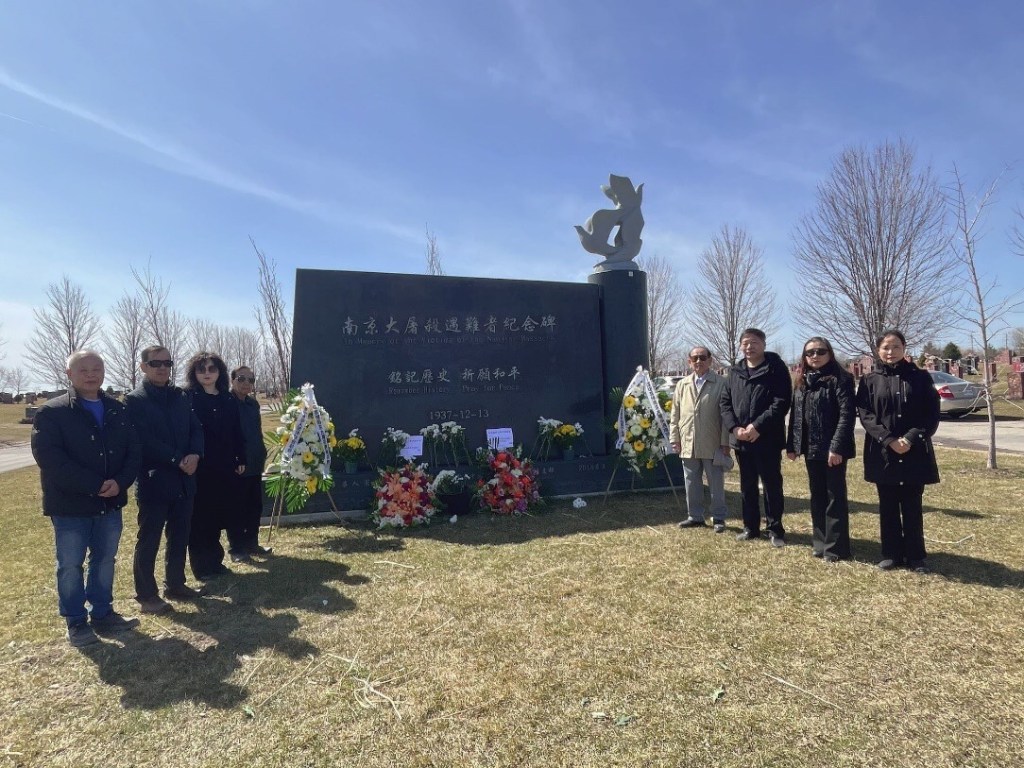 【2025年4月4日多伦多华联总会消息】2025年4月4日乙巳清明节,多伦多华人团体联合总会常务理事会的理事代表们,来到了列治文山市爱恩墓园【南京大屠杀遇难者纪念碑】前,举行了简单而又庄严的祭奠仪式,寄托心中对88年前30万死难同胞的无尽哀思。