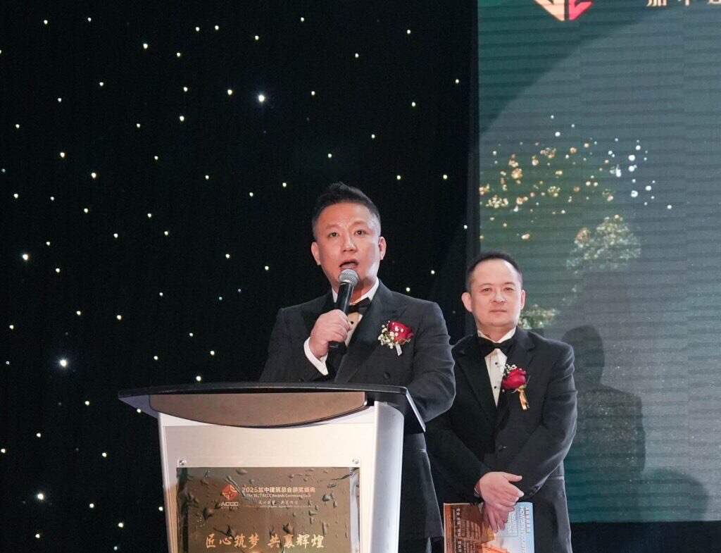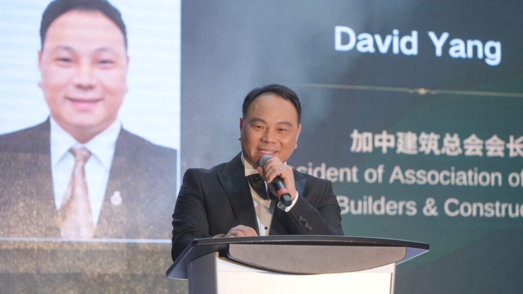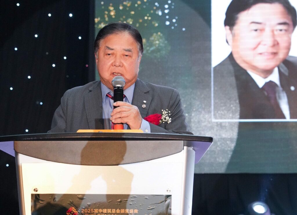 加中建筑总会会长 David Yang 在致辞中表示,在当前房市低潮、经济波动的大环境下,总会以坚定信心团结业内力量,通过颁奖盛典激励行业士气,推动产业革新与资源共享。