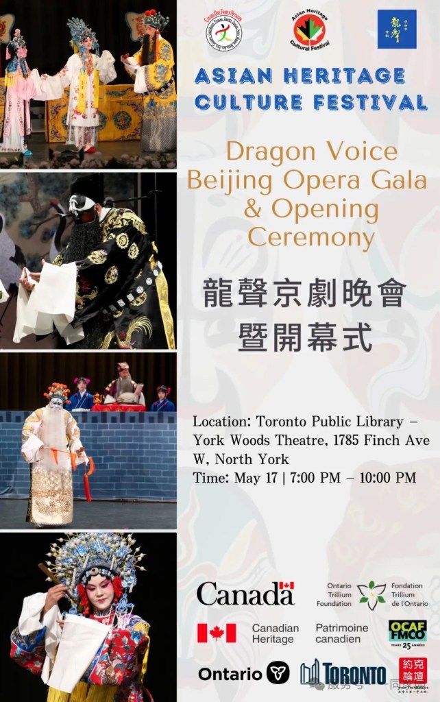 5月17日,。 由龙声京剧团举办,在Toronto Public Library York woods Theatre 举办的亚裔传统文化艺术节开幕式「龙声之春」京剧演唱会圆满落幕。
