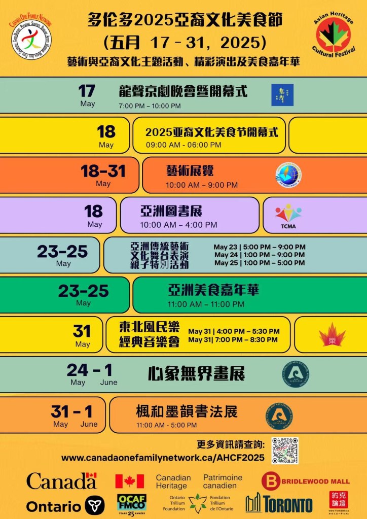活动将从5月17日至6月1日,为期两周,在大多伦多地区多个地点呈现京剧晚会、图书展、艺术展览、亲子文化体验、美食品鉴、音乐会、书画展等丰富活动。