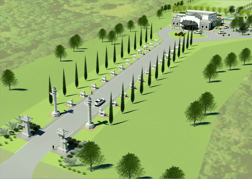 西方几何园是专门为基督徒设计的园区,采用对称的几何设计语言,融入了基督教的经典元素。园区的设计体现了基督教的庄严感和神圣性。