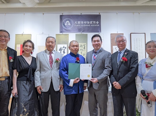 2025年5月31日,由大西洋書法家協會主辦的「楓和墨韻」書法展在加拿大多倫多大中華文化中心隆重揭幕。作為亞裔傳統文化藝術節的重要組成部分,本次展覽集結了四十位本地優秀書法藝術家,展出涵蓋真、草、隸、篆、行等多種書體的六十餘幅書法篆刻佳作,展示了中國書法「點畫、結構、章法、佈局」的藝術之美,體現了傳統詩書畫印合一的文人藝術境界。