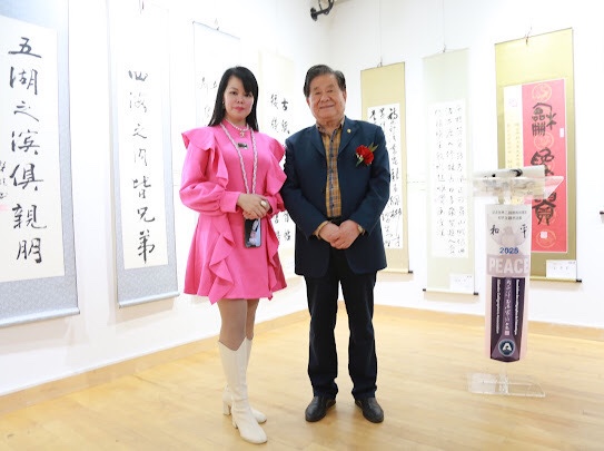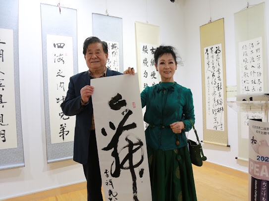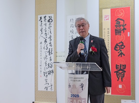 本次書法展以「和平」為主題,呼應世界反法西斯戰爭勝利八十週年。「銘記歷史,守望和平」的理念深植於眾多作品之中。其中,兩位大西洋書協顧問:81歲高齡的藝術家任金昌老師以四尺整紙書寫「和平」兩字,78歲高齡的前龍門石窟研究院院長李祥民老師以朱墨所書兩幅四尺中堂“和平”和“勝利”四字,蒼勁有力,氣勢非凡,成為本次展覽的點睛之筆。
