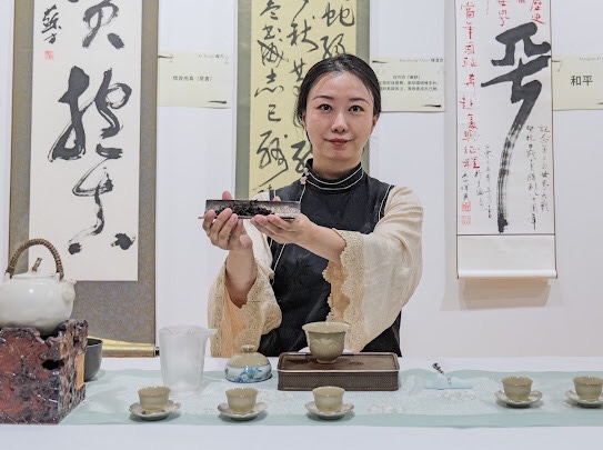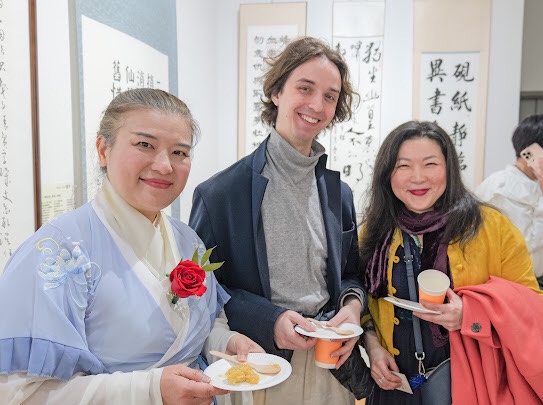 展覽現場同時舉辦了詩詞、古琴、茶道、篆刻等雅集活動:协会副会长黃贊揚老師以其自作诗《書法》,吟诵了“从魏晋来到明清,暮春之初,寒食之后,黑白——晕染了东方的风流”这一书法千年的咏叹;宋堅老師朗誦古典詩詞,一曲苏轼的《定风波》起伏跌宕,声情并茂。两首诗词都由古琴名家朱彥晏老师即興伴奏,琴随诗意,词伴琴音,余音绕梁不绝,将诗情词意演绎的古韵幽鸣;Ming Tea’s Training高級茶藝師汪明明則奉上一場雅致茶席,深受嘉宾和来访者的欢迎;書法家畢雲來現場篆刻印章「不跪」二字,引發现场观众的围观和共鳴。