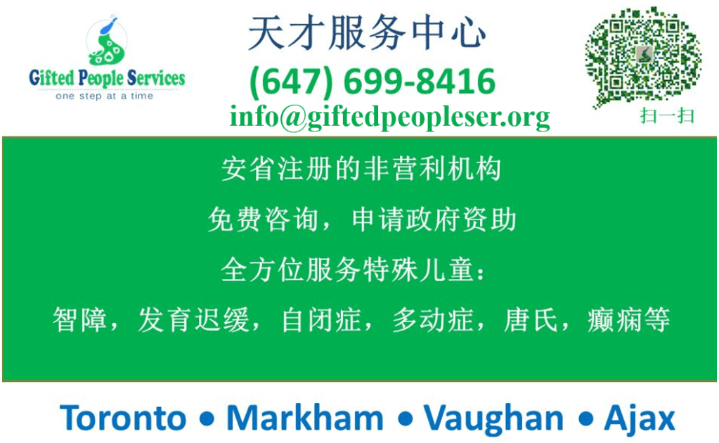 - 了解Gifted People Services 为特殊孩子所提供的专业服务,如语言支持、社交小组、音乐治疗、ABA融合教学等