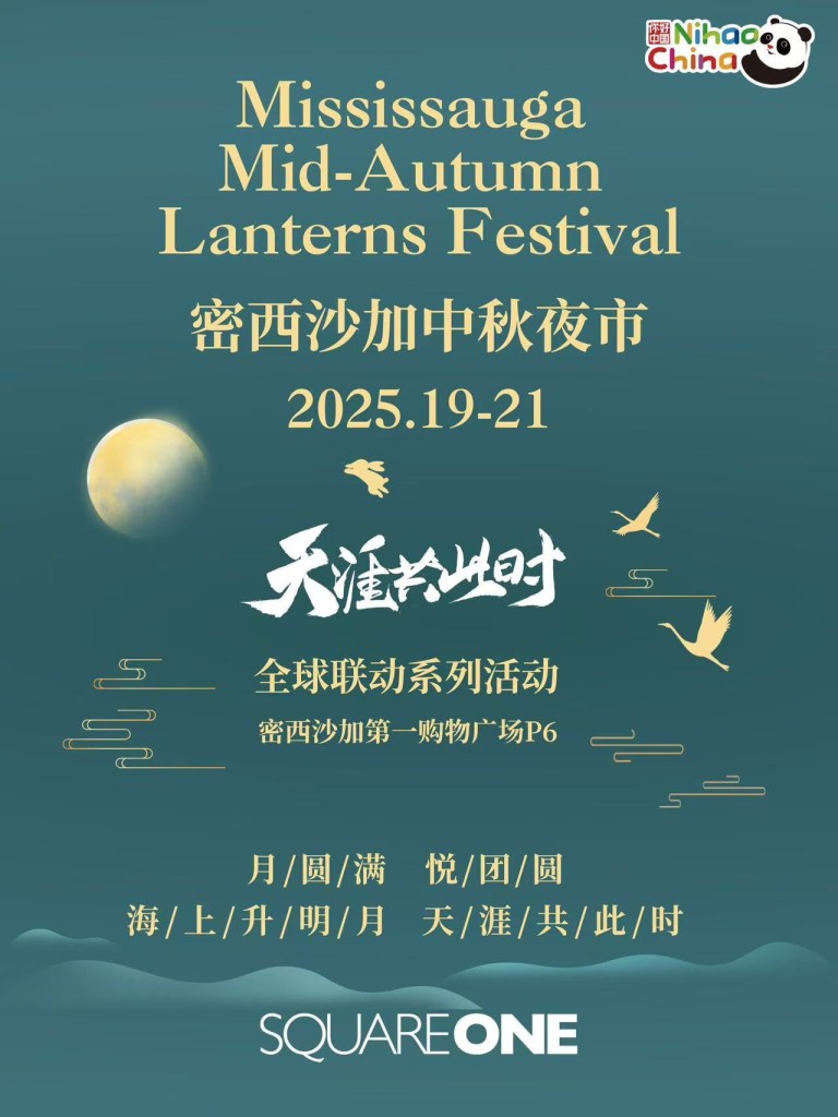 [加拿大·密西沙加] 2025 密西沙加中秋夜市将于2025年9月19日至21日在密西沙加Square One购物中心P6隆重举行,作为 2025多伦多「天涯共此时—中秋节」系列活动之一,将为市民和游客呈现一场融合美食、花灯、音乐与文化体验的中秋嘉年华。