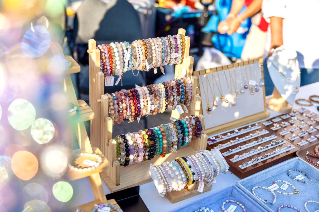 逛夜市时,千万不要错过琳琅满目的小商品和民间艺术家的摊位。这里汇聚了本地顶尖的民间艺术家,他们通过独特手工设计展示个性与匠心,出售的作品包括手工艺品、首饰、家居用品等,每一件都充满绝佳的创意。此外,文化展示区还带来了丰富的传统工艺体验:面人、蜡染、毛笔书法等民间艺术,让观众零距离感受中秋文化的魅力。