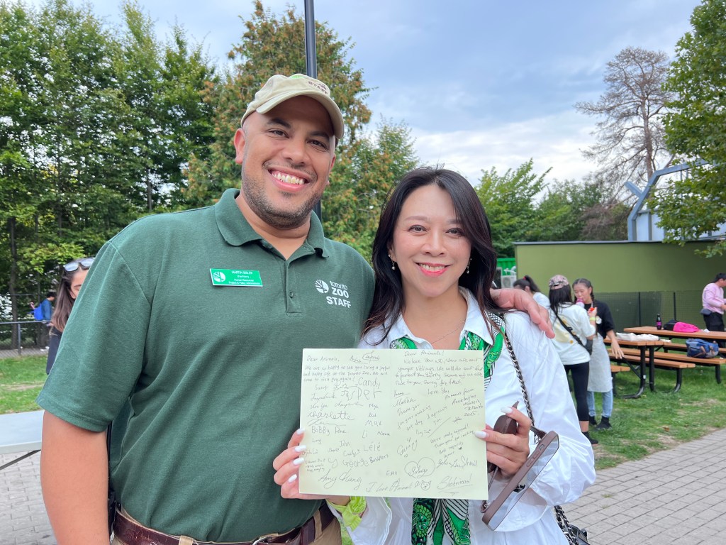 作品完成后,举行了庄重的赠送仪式。多伦多动物园负责人Martin 代表全体员工接收了孩子们的艺术创作,并对孩子们的才华与环保热情表示由衷的赞赏: