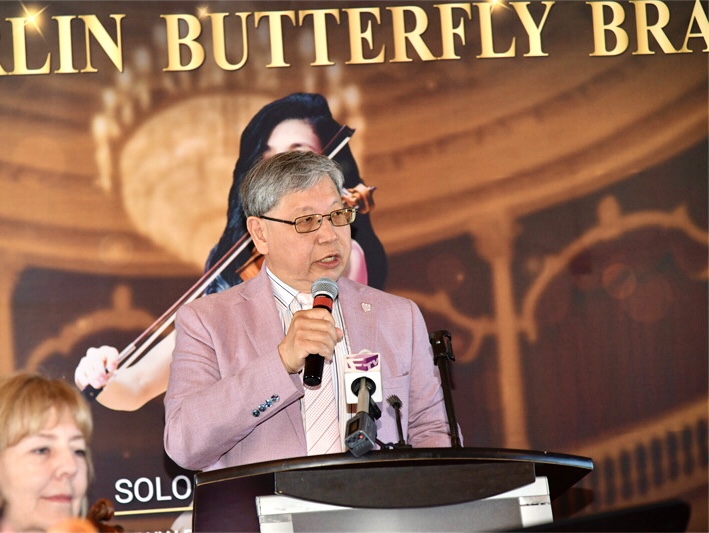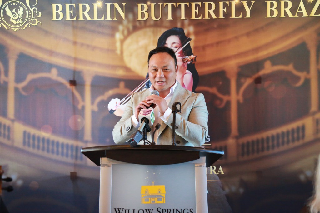 最重要的致辞来自Angel Wang本人。她娓娓道来自己的音乐成长路,从一个喜欢拉二胡的中国小女孩,一路刻苦练习,经过多练的奋斗,已然成为加拿大皇家音乐学院的著名小提琴家,唯一不变的是自己积极推动东西方音乐文化交流的初心。她介绍说,德意·蝶梦·探戈音乐会曲目将融合柏林的最著名的古典音乐风格, 至中国著名小提琴协奏曲《梁山伯与祝英台》的浪漫爱情旋律,以及巴西热情奔放的探戈等。柏林篇章将演绎迈耶贝尔(Meyerbeer)、瓦格纳(Wagner)与勃拉姆斯(Brahms)的经典作品;中国篇章则以广受喜爱的《梁祝》致敬中华音乐遗产;而南美篇章则由皮亚佐拉(Astor Piazzolla)的拉丁激情旋律点燃全场。三种不同风格将在音乐会中交汇碰撞,呈现一次难得的听觉盛宴。