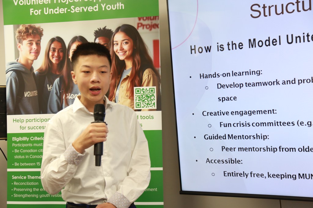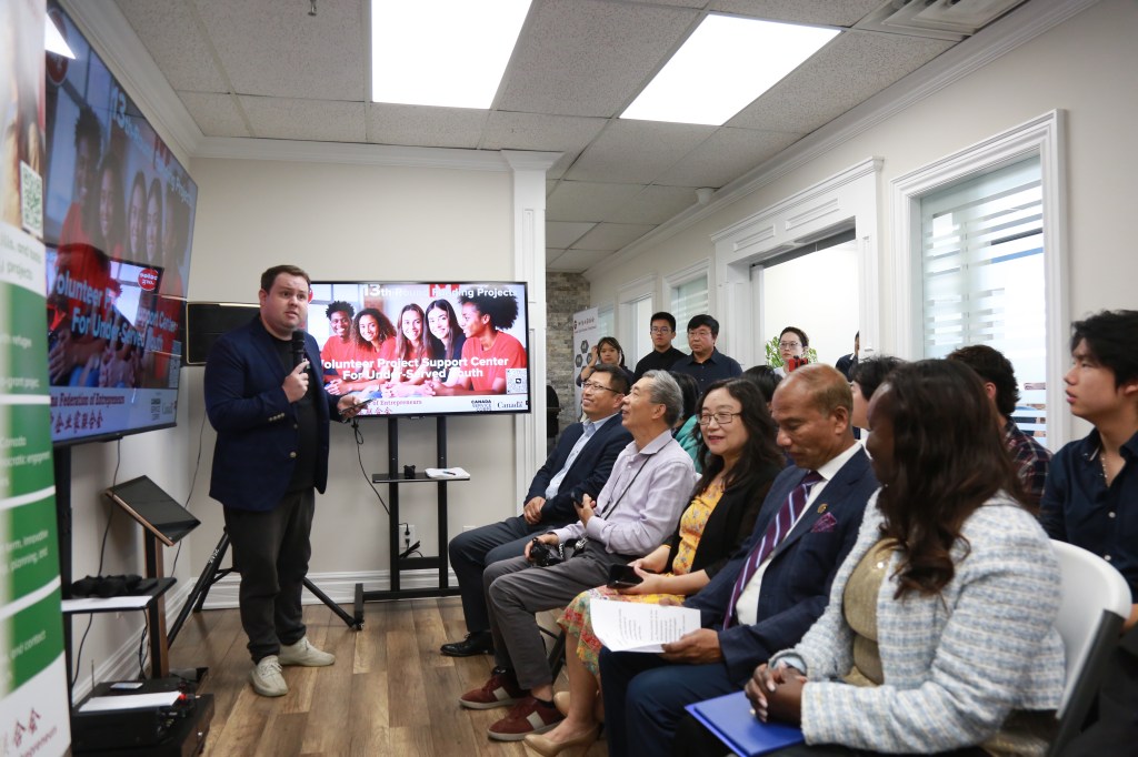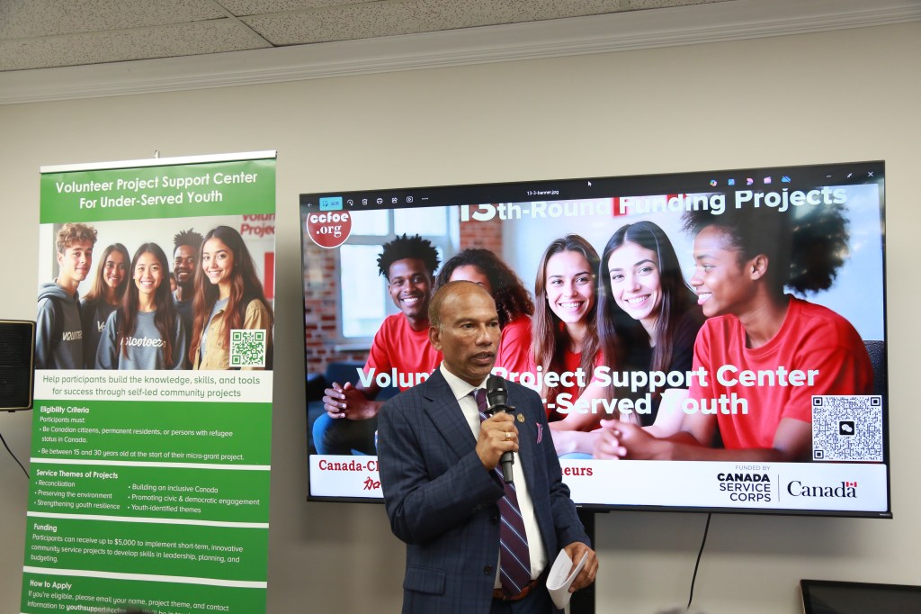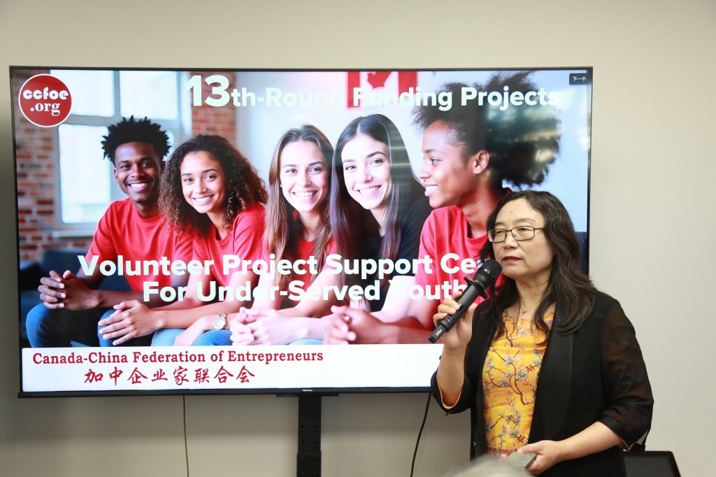 加中企业家联合会会长刘慧芸女士致欢迎辞,感谢安省议员罗庚一直极力支持和向社区推荐这个青年志愿者项目。由加拿大联邦政府 “加拿大志愿服务团” 资助的“志愿者项目支持中心”为青年提供成长、领导和回馈社会的机会。每个项目最高可获得 5,000 加元的资金支持,从项目开始到结束均配有全程指导,并可获得由联邦部长签署的证书。青年不仅收获宝贵的实践经验,更在过程中培养领导力、增强社会责任感,并以亲身推动社会改变而自豪。