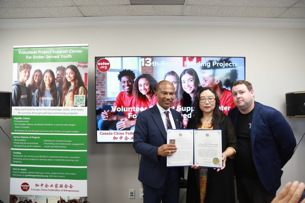 《青年志愿者项目支持中心》由加中企业家联合会设立、加拿大联邦政府“加拿大志愿服务团(Canada Service Corps, CSC)资助,致力于通过系统化支持与导师指导,帮助青年在系统化支持与导师指导,帮助青年在志愿服务中成长为具备社会责任感与行动力的新一代社区领袖。
