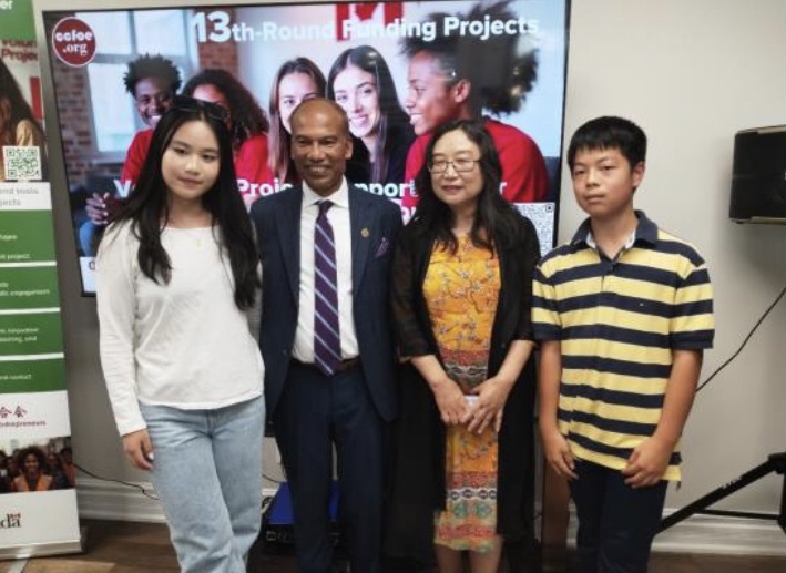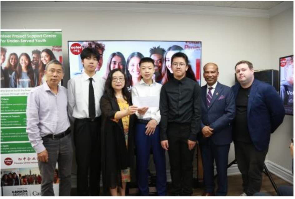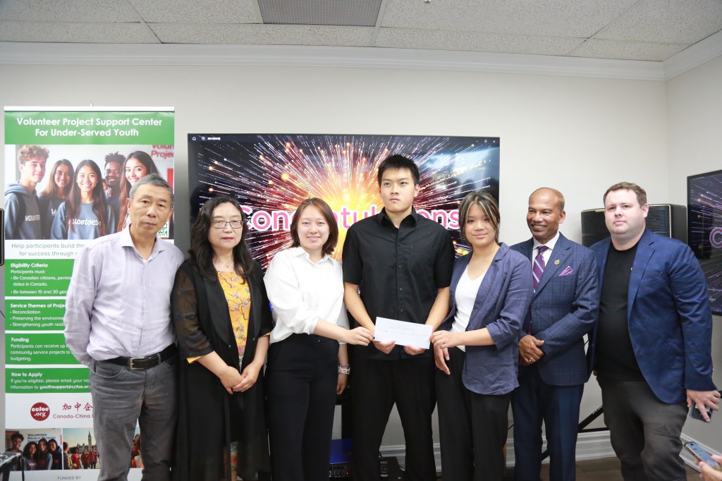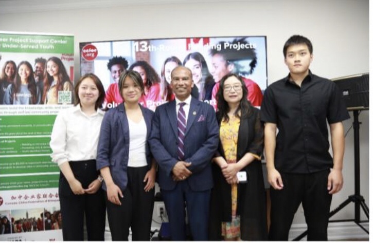 在颁发仪式上,安省议员罗庚与会长刘慧芸女士共同为四支获得政府资助的青年团队颁发支票,鼓励他们在服务社区、实现理想的道路上坚定前行。