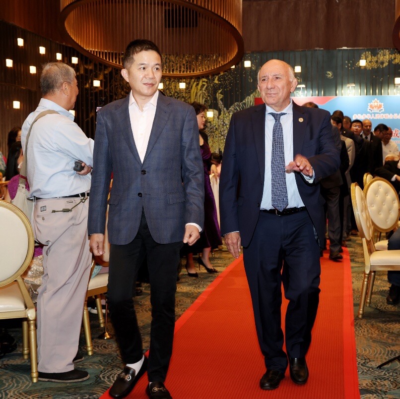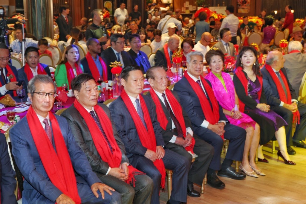 是晚华宴,不仅是庆祝华联总会成立40周年,也恰逢中华人民共和国76周年华诞、中加建交55周年与中秋佳节前夜,可谓“四喜临门”。虽然古人云“良辰、美景、赏心、乐事,四者难并”,但今夜,四美兼具,胜友如云。这正是红毯大鼓震撼开场,四喜同庆共襄盛典