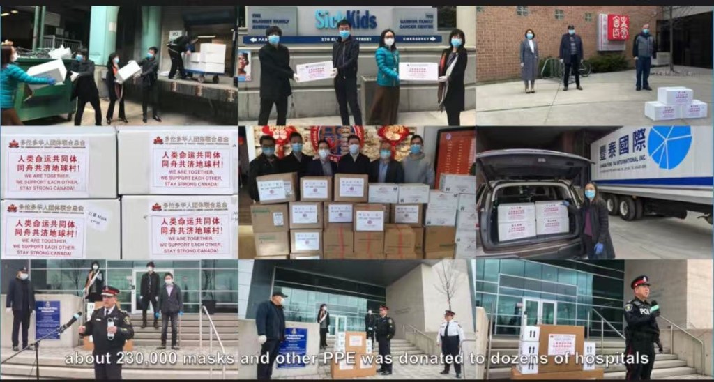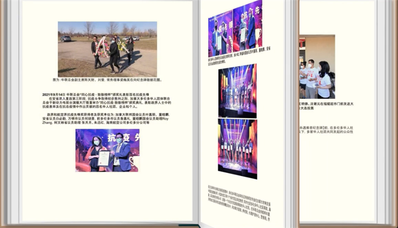55年的加中友好交往道路,是由无数热爱加中两国的人们铺就,这其中,多伦多华人团体联合总会,正是这条路上一位坚定的行者与铺路人。为加中友谊筑桥,为社区建设出力,从初创时的筚路蓝缕,到如今拥有100多个团体会员,成为华人社区的旗帜,华联总会走过了不平凡的四十年。特别是在疫情期间,华联总会第一个吹响社区支援抗疫前线的集结号,同时带头捐款,积极筹措抗疫物资,冒着风险,率先向医院、养老院捐赠防疫物资,协调各界,统筹安排,真正起到了华人社区中流砥柱的作用。接着播放的《多伦多华联总会四十周年回顾视频》与英文配音的《华联总会抗疫纪实》短片,将现场气氛推向回忆、感怀与振奋,许多侨界前辈在镜头中看到自己当年的身影,既感慨万分,又倍感自豪。