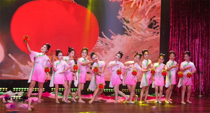 恰逢国庆,又临中秋。接下来,晚会氛围渐趋温馨,进入了中秋主题环节。首先由Happy Linda Dance的小朋友们带来了充满民族特色的扇舞表演《秀色》。粉裙绿扇的女孩子们在水墨画一般淡雅美丽的背景下轻盈起舞,如出水芙蓉一般清新脱俗赏心悦。舞毕,小仙女们又打起了装饰在宴会桌上的玲珑红艳亮闪闪的小灯笼,表演了一段专门为本场晚会编排的灯笼舞,最后齐齐在舞台上用稚嫩可爱的童声向来宾送上中秋祝福,台下嘉宾特别是老人家个个笑逐颜开喜上眉梢,现场一片温馨祥和。