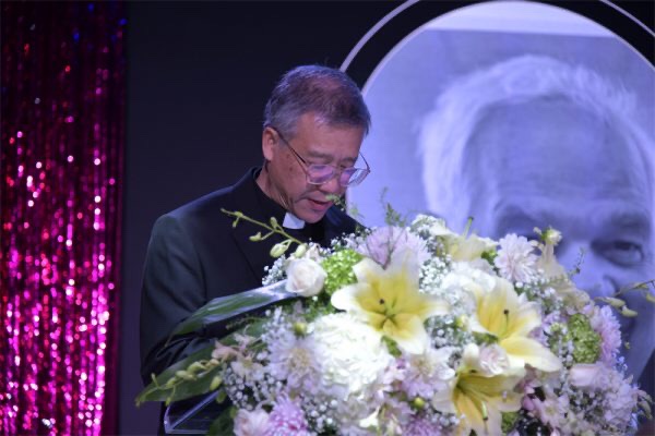 此次追思会除了缅怀麦家廉先生,还为其筹得善款。共同主席和主办人员上台,将五万加元的款项交到Nancy手中 做为麦家廉专项基金。