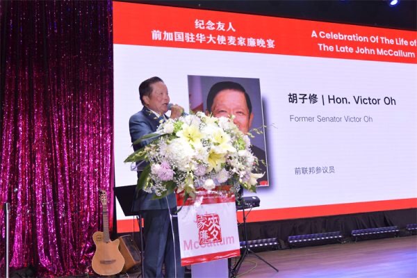 活动开始,做为麦家廉生前好友、活动倡导人和联合主席之一的陈国治先生首先致辞,他回顾了和麦家廉的共事经历,肯定了麦家廉的卓越远见、正直的品格、他对人的关切和对国家的热爱。之后,做为华人政要代表的前国会议员谭耕、董晗鹏和蒋振宇先后发表讲话,他们和大家分享了和麦家廉的交往经历,赞扬了麦家廉在中加关系方面做出的贡献,为失去一位良师益友表达了深切的惋惜。之后,麦家廉的太太Nancy上台,为此次活动的共同主席和组委会成员颁发了感谢状,她代表家人们感谢了到场的来宾和主办方成员们。
