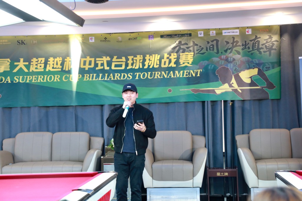 同时,主办方 OA CLUB、星八台球俱乐部主理人,加拿大台球联合会代表,以及 Superior C Billiards Academy 超越台球学校校长 也分别上台发言。多位 企业与赞助商代表 在致辞中表示,将持续支持中式台球在北美的发展,助力体育精神与社区文化的传播。