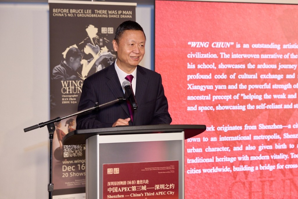 中国驻多伦多总领事罗伟东在致辞中表示,舞剧《咏春》是一部承载中华文化根脉、展现当代中国精神气质的艺术作品。该剧以舞蹈语言诠释武学精神与普通人追梦历程,既体现了中华传统文化的深厚底蕴,也展现了当代中国文化的开放姿态与创新表达。他指出,文化交流始终是中加关系的重要纽带,希望《咏春》的驻演能够为加拿大多元文化环境注入新的活力,进一步推动两国民间交流不断深化。