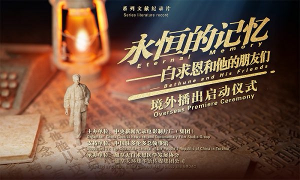 此次境外播出仪式的主办单位是中央新闻纪录电影制片厂(集团),支持单位是中国驻多伦多总领事馆,承办单位是加拿大白求恩医学发展协会和加拿大环球华语传媒集团。