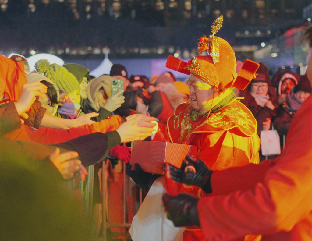 为了确保观众能有最舒适的“打卡”体验,组委会在细节上进行了极致打磨。现场设立了大型供暖大帐篷,让大家在温暖中近距离体验高科技和传统文化。Echo Market年俗集市免费开放,不仅汇集了地道的亚洲美食(如经典糖葫芦),更特别推出了定制复古报纸,让您带走一份属于 2026 春节的专属纪念。ji