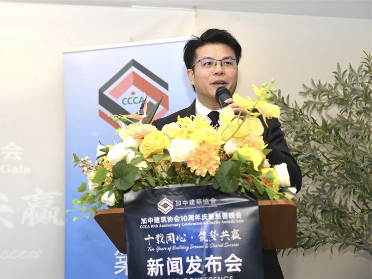 在 2月7日举行的新闻发布会上,加中建筑协会会长Alex Huang表示,十周年庆典内容丰富、形式多元,将涵盖高端行业论坛、专业展览展示、年度行业颁奖、慈善公益募捐及精彩文艺演出等多个重要板块。活动预计将汇聚数百家来自建筑、地产、工程、设计、建材及金融等领域的领军企业,吸引近千位行业精英、政商领袖及专业人士齐聚一堂,共同见证行业发展成果,表彰卓越成就,促进资源共享与合作共赢。他同时特别感谢Aero Future Canada Inc.对本次晚会的主题赞助支持。