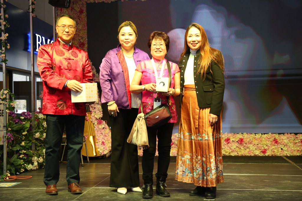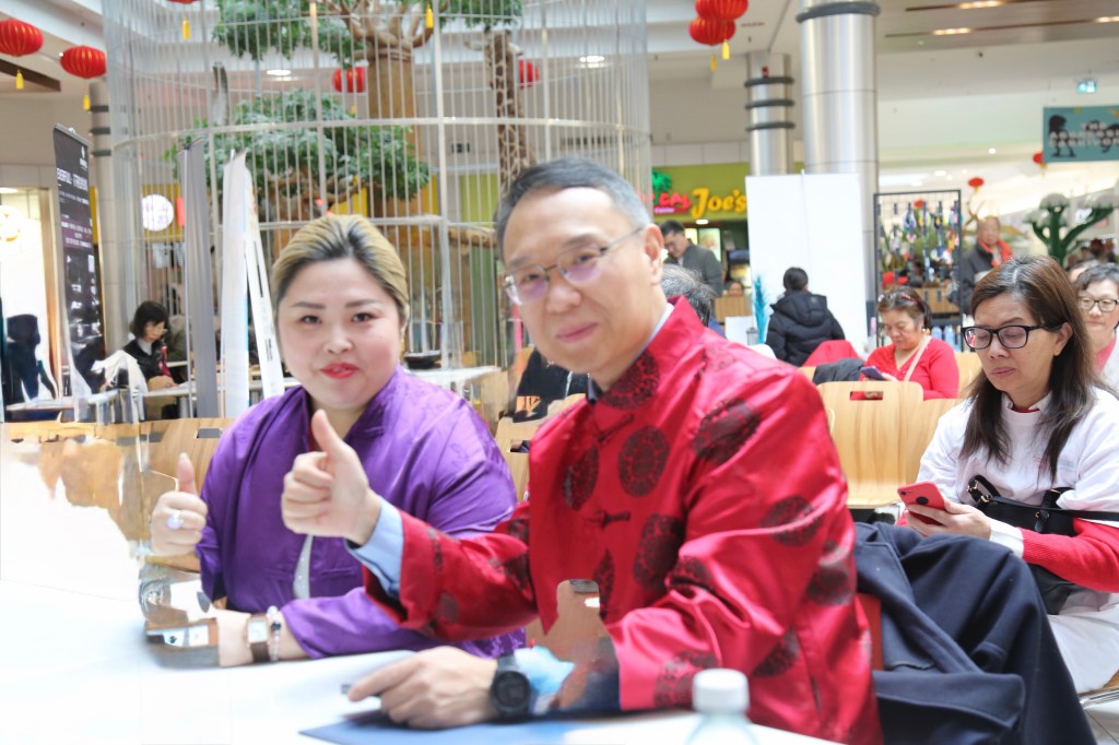 活动现场气氛温馨而热烈。Amanda Yeung Collucci 与 Simon Cui 身着中式服饰登台,与观众共同演唱经典歌曲《潇洒走一回》,成为跨文化互动的动人瞬间。